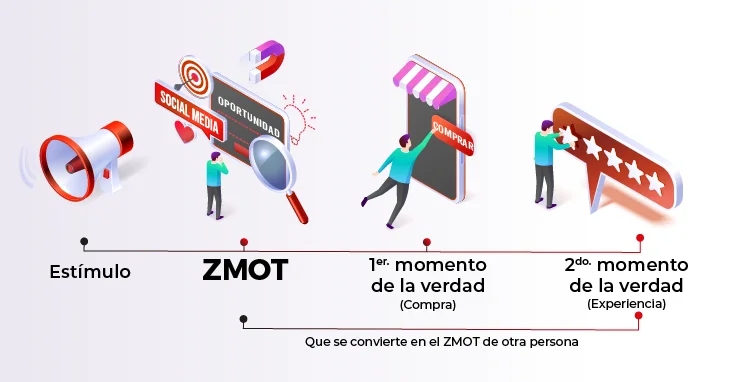 Durante este proceso el consumidor pasa por el momento cero de la verdad (ZMOT) al realizar una búsqueda en internet recopilando datos, características y variedades de precio, pero ¿cómo va a decidir dónde comprar? Si bien las búsquedas en internet brindan mucha información sobre un producto o servicio el consumidor siempre va a querer saber más detalles y se irá con el vendedor que sepa atender sus necesidades de forma personalizada.